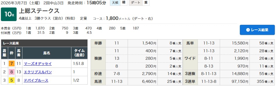 2026年3月7日提供の中山10R・上総Sは